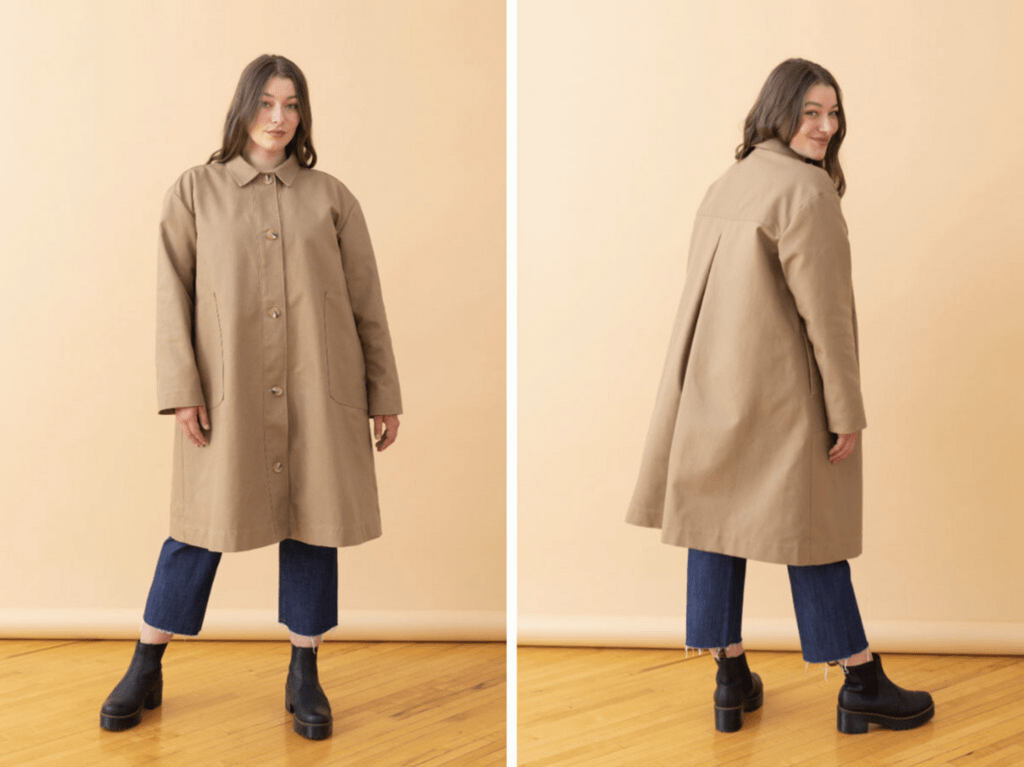 This coat has thoughtful details like a rolled collar, sewn-on placket, 1” buttons along the front, and patch pockets with a faced side opening. Sew Indigo in your favorite outerwear fabrics, like canvas, duck cloth, twill, denim, corduroy, and coatings.