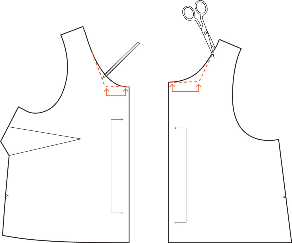 Note: For best results, be sure to make any necessary fit adjustments before hacking your pattern.