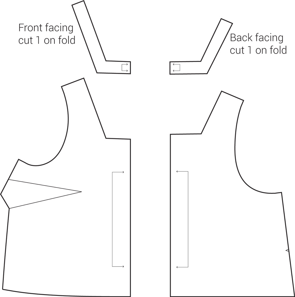07 | Cut the facing pieces out and label them, “Front Facing - Cut 1 on fold” and “Back Facing - Cut 1 on fold.”