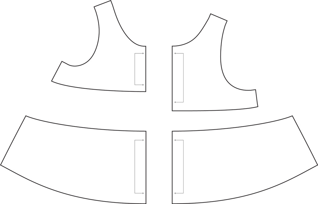 10 | To sew, use basting stitches to gather the lower bodice pieces. Attach the lower bodice to the corresponding yoke pieces. Press seam allowances up and finish together.