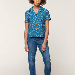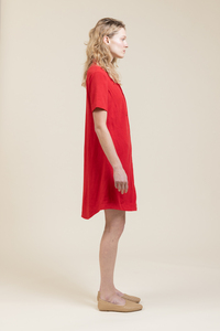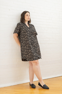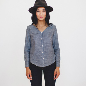 Eden is a classic button-up shirt with a modern touch. It has a slight A-line shape with a V-neckline, short sleeves, and a shawl collar finished with clean facings at the center front. The curved hemline and French darts add just the right amount of shaping. Whether you dress it up or keep it casual, Eden is the kind of versatile shirt you’ll reach for again and again.