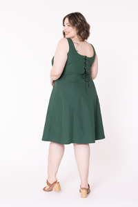 Morgan is wearing a size 20 Emma dress with no adjustments. Her measurements are 48” (121.92 cm), 41” (104.14 cm), 52” (132.08 cm), and she is 5’9” (1.75 m) tall.