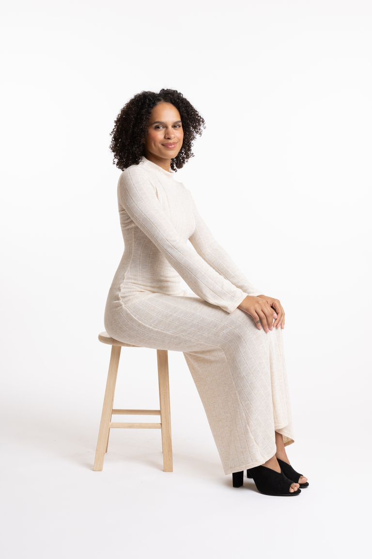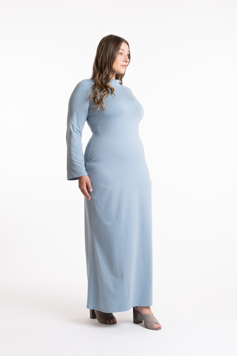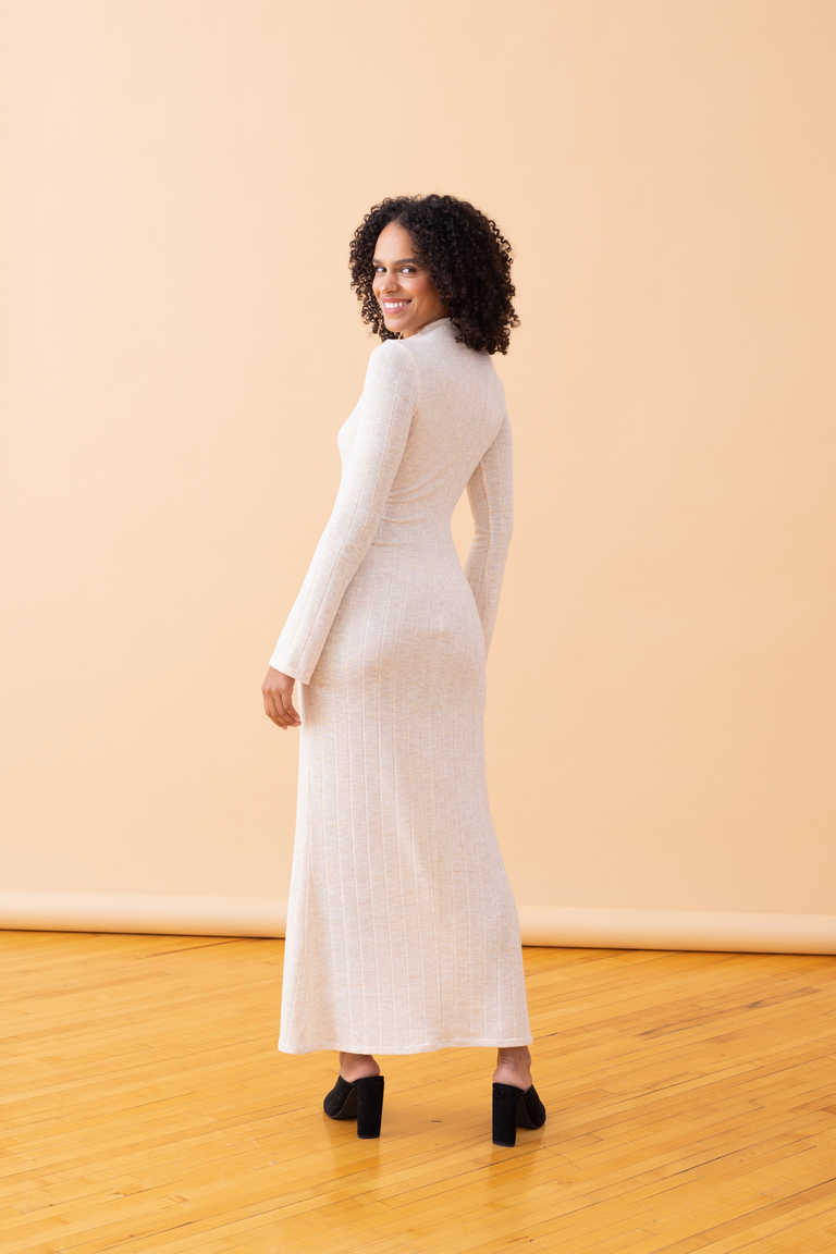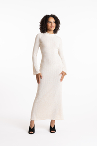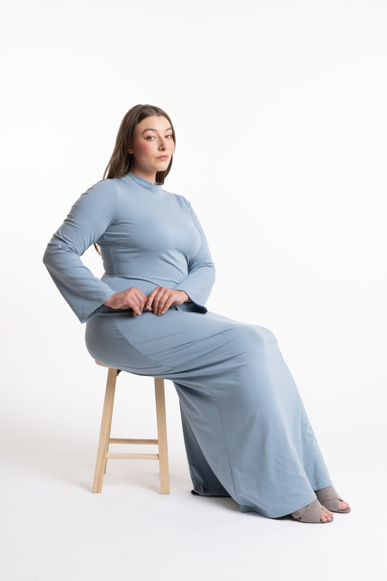 Greer is a timeless, figure-hugging knit dress with an ankle-skimming length that keeps you feeling comfortable and effortlessly chic. With its trumpet skirt and subtly flared sleeves, Greer offers a unique silhouette that adds a touch of drama while still being incredibly wearable.