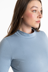 The neckline features a relaxed mock neck for a modern, polished look, while the fitted shape through the bust, waist, and hips celebrates your curves.