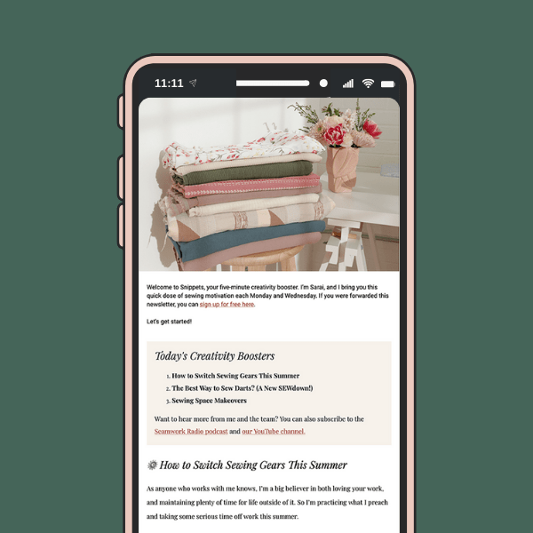 The newsletter from Sarai that’s designed to level-up your sewing — delivered Mondays and Wednesdays.