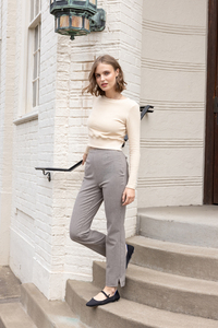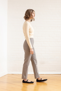 Eden is wearing Lars sewn in a stretch suiting. We paired it with an Astoria Sweater.