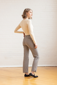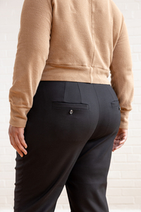 The Lars Pants are sleek, high waisted, pencil pants designed for stretch wovens, offering a polished look with all-day comfort. Fitted throughout, Lars hits at the natural waist and features single front and double back waist darts for subtle shaping and a flattering silhouette. An invisible side seam zipper maintains a clean finish, while back, single welt pockets with button closure adds a classic touch. The waist is finished with a facing for a smooth, structured fit, and a side slit at the hem adds ease and visual interest. A skill-building project, Lars is a versatile wardrobe essential perfect for dressing up or down.