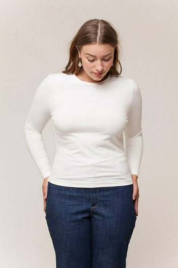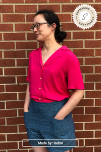 All-purpose polyester thread, sewing machine needle, hand-sewing needle, five (misses) or six (curvy) 3/8" buttons, 1/4 yard (0.2 meters) of lightweight fusible interfacing.