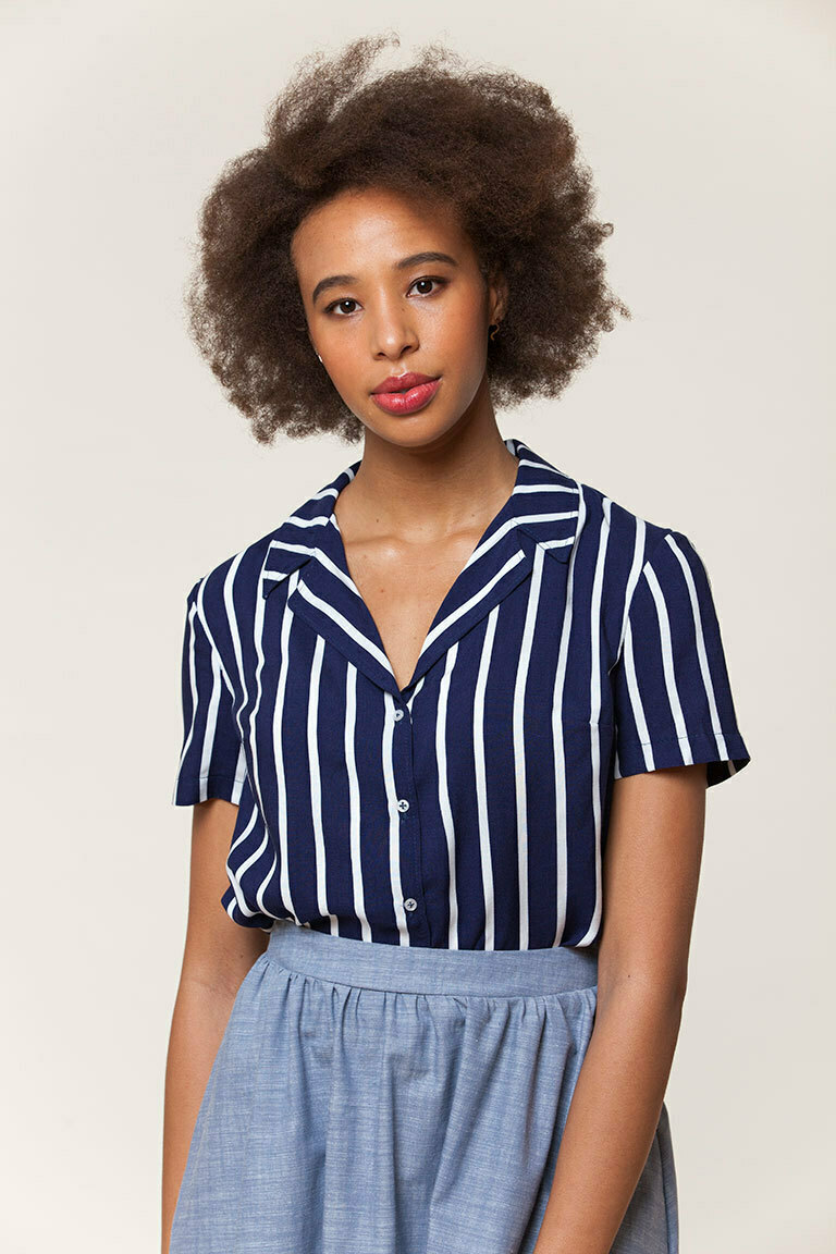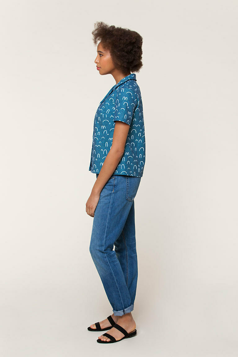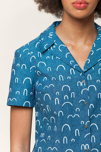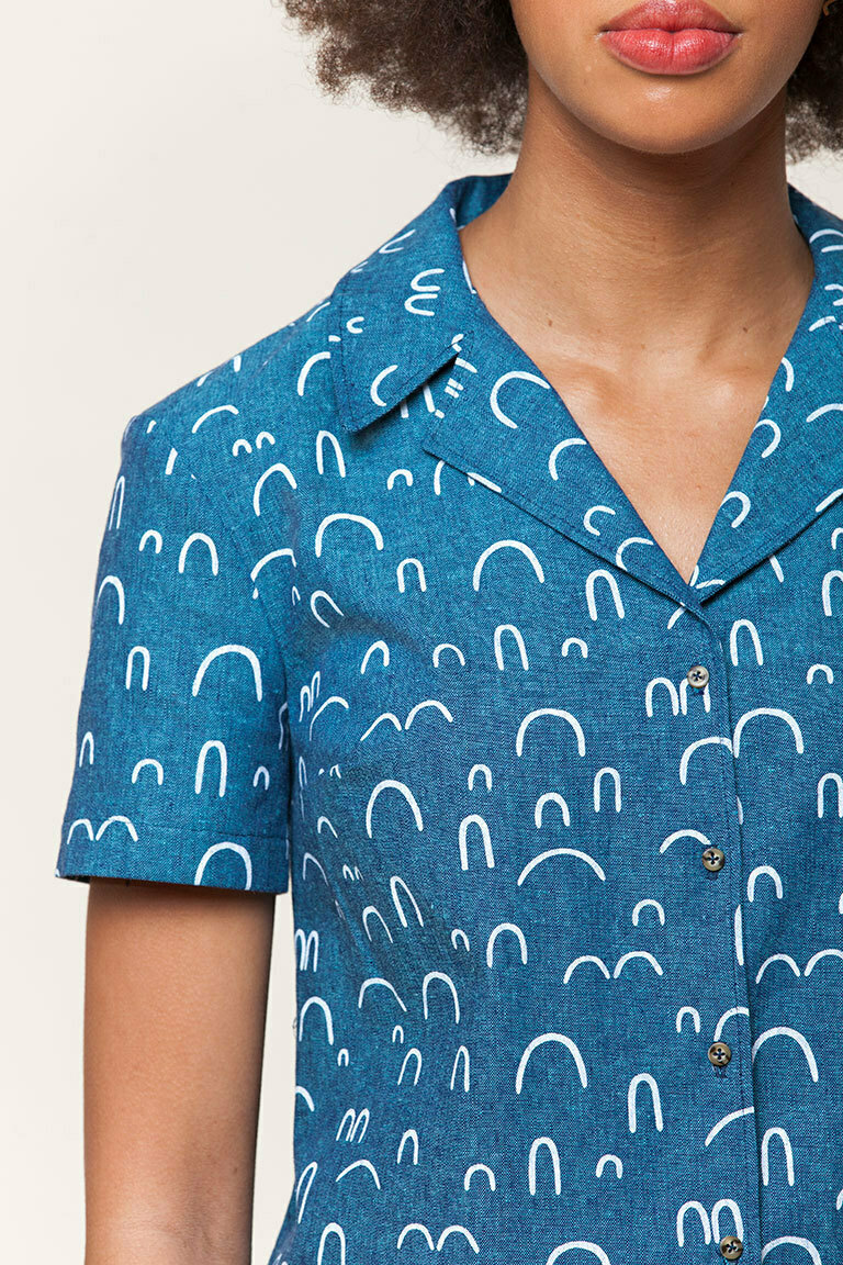 Light to medium weight woven fabrics such as cotton lawn, shirting, rayon, linen, and chambray.