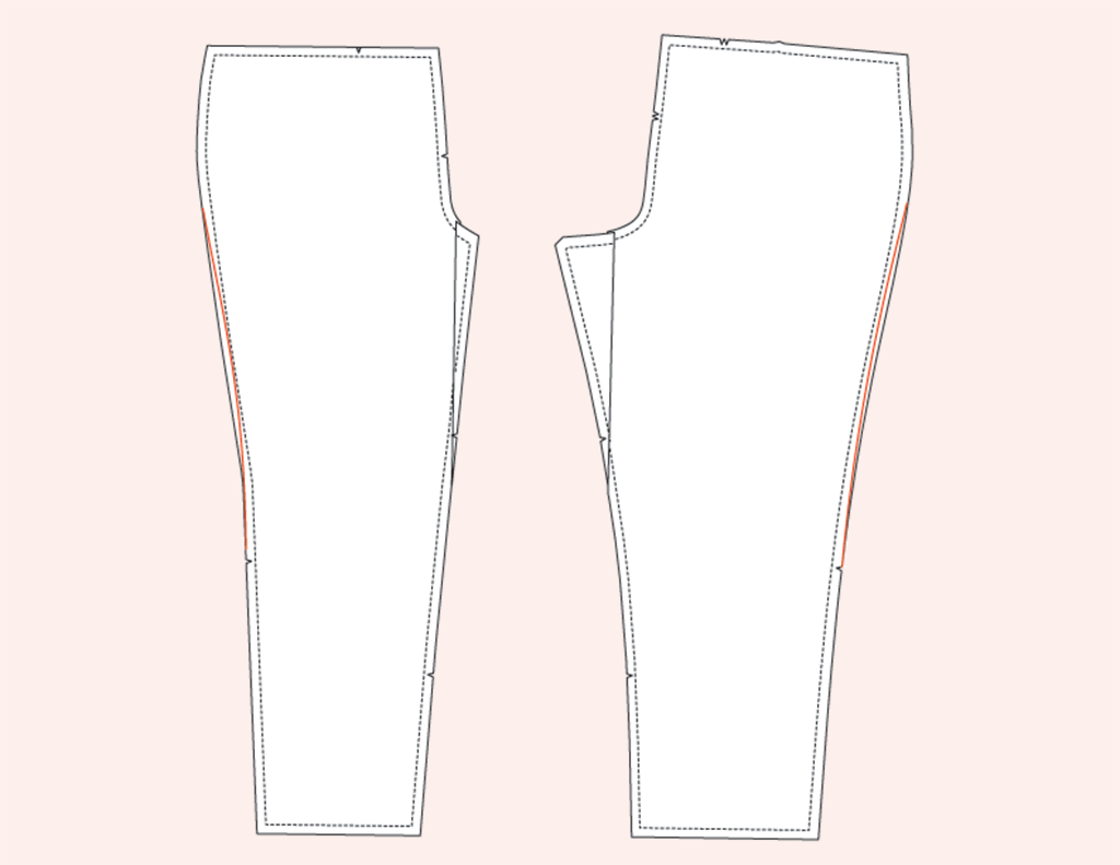 - Adding to the hip line at the side seam on the back pants legs.