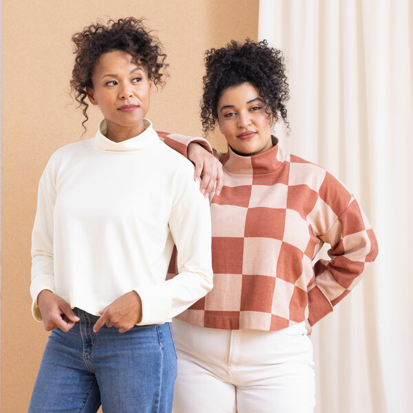 Get the best fabric recommendations, fitting help, and outfit ideas for this cozy pullover sewing pattern.